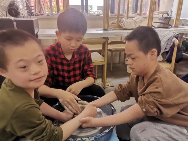 在老师们的引导帮助下,来自东湖区、西湖区的困境儿童与市儿童福利院的孤残儿童一起充分发挥想象力和创造力,运用捏、揉、拍、挤等技巧,将一块块原本平平无奇的泥土塑造成一件件神奇的陶艺作品。在这场有趣的“玩泥巴”活动中,孩子们真正做到了玩中学、学中乐。